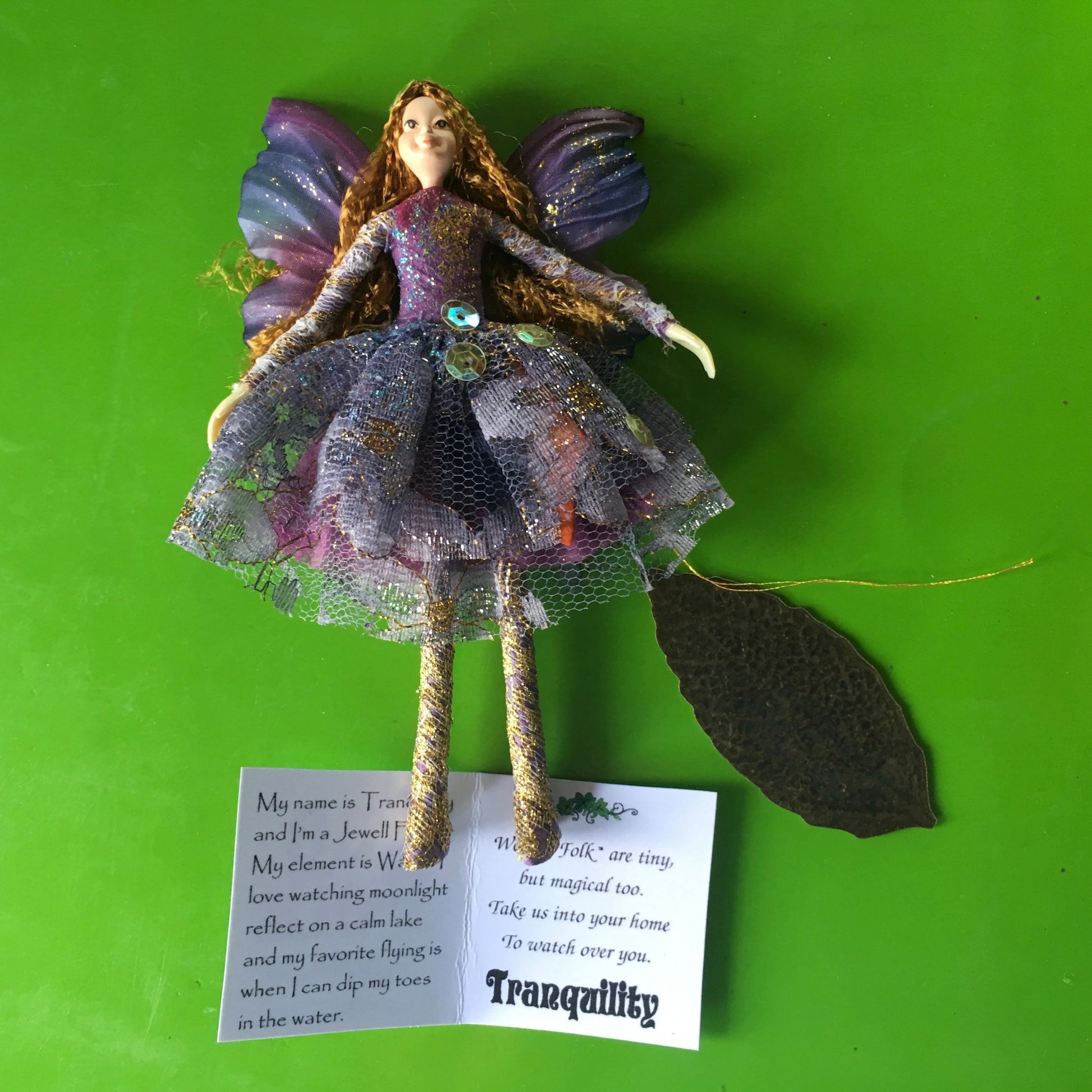 Each collectible doll is named and comes with a story tag. One side of the tag says, "We Fae Folk are tiny, but magical too. Take us into your home to watch over you." And gives you its name. The other side of the tag says something about its personality.